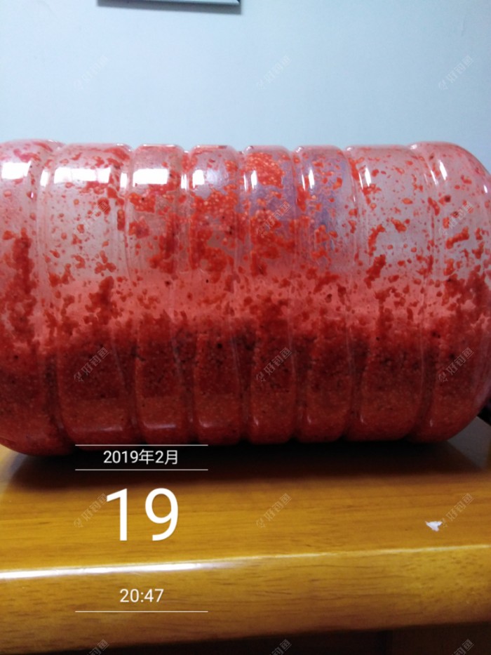 这就是最终效果了(之所以横着是为了方便下次摇动之后反方向放置),再后面就每隔一段时间再摇一下,直至超过24小时就可以不用摇了,三天之后新的鲫鱼窝料神器就将闪亮登场,看来周六鲫鱼爆护就靠这瓶宝贝咯?
