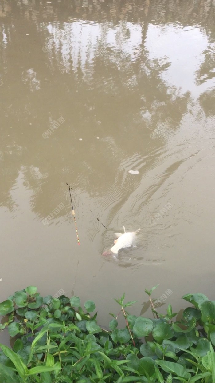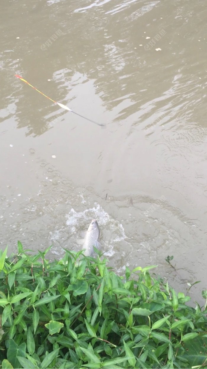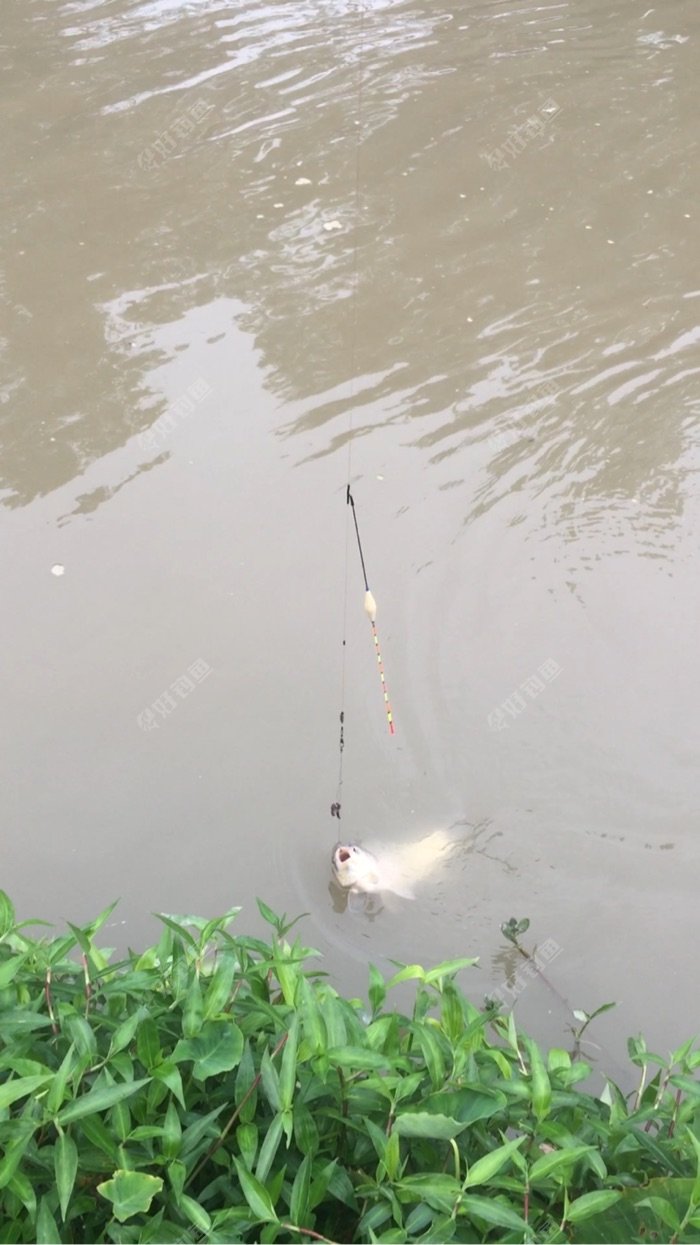因为走水,难看漂,漂一直在动,不知是水冲着动还是有鱼在咬饵!忽然一黑漂,激动中马上扬竿!中……