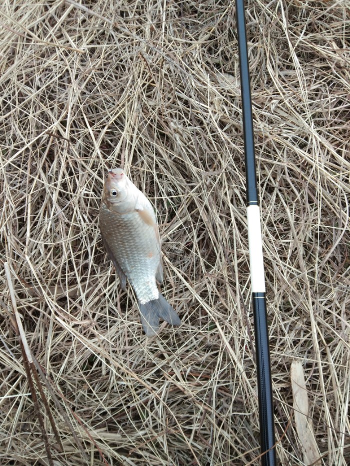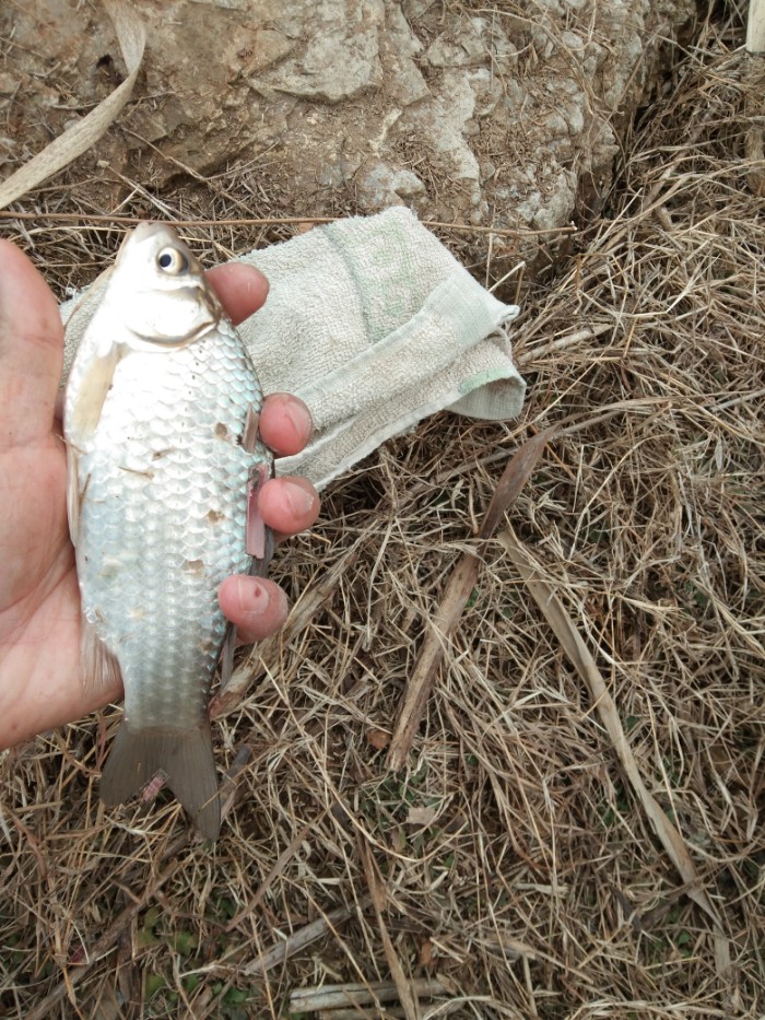 闲话省去,主奔主题。栓线挂虫,抛入水中,窝点3,水有些浅,往回拽了拽,杆还没放稳,恍惚感觉漂豆上浮了,条件反射,一抖腕子,有点小份量,提杆中鱼。心头一喜,打窝没几分钟,这就开口了,不会是捅了鲫鱼吧?
