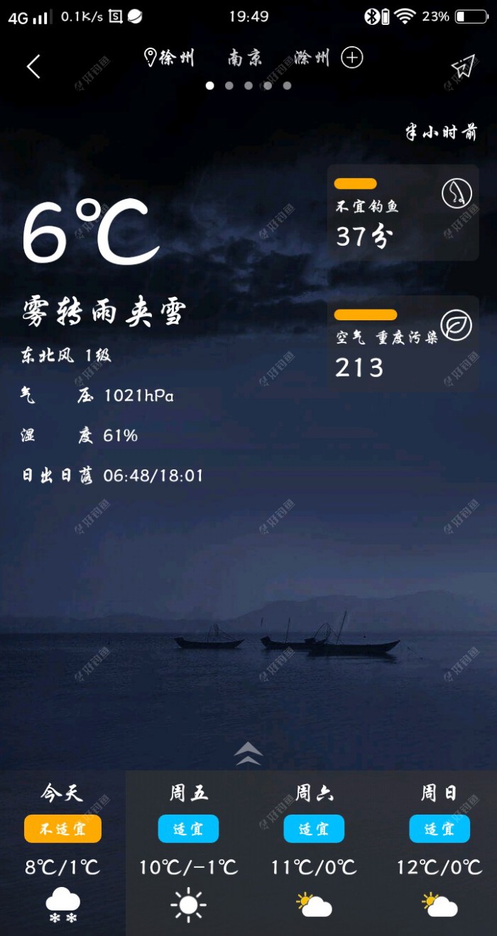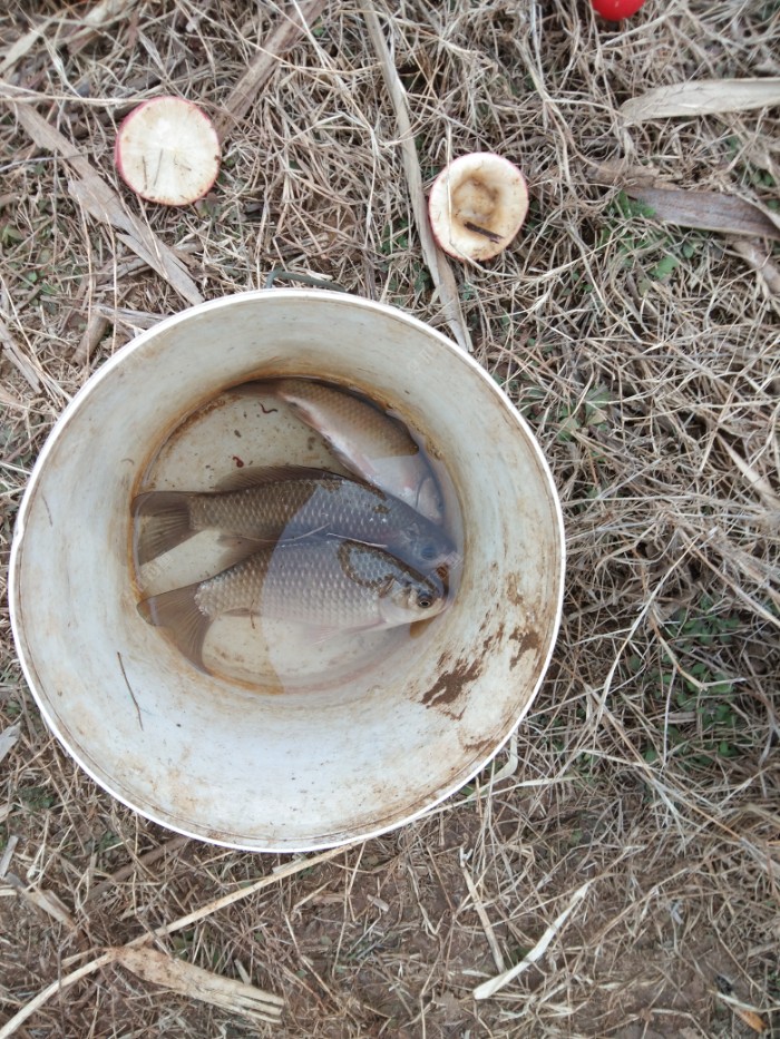 既然想去玩蛮不能打没准备的仗,先查一下平台天气,一看1-8度,提示不适合钓鱼,心凉了半截,不管他,为渔不为鱼,哪怕只能能到水边坐坐,我心足矣! 主意已定,那就抓紧时间。把饭菜做好,和爸妈一起吃完饭,收拾了碗筷,抬头一看十三点二十了,得抓紧了。简单收拾一下,一根杆,两根线,一瓶酒米,一个小桶,本不想带桶的,匆匆忙忙的去玩一下,也没提前打窝,天气还不好,不一定会有鱼获的。但转念一想,万一有鱼获咋办,人总要不理想的,万一实现了呢?