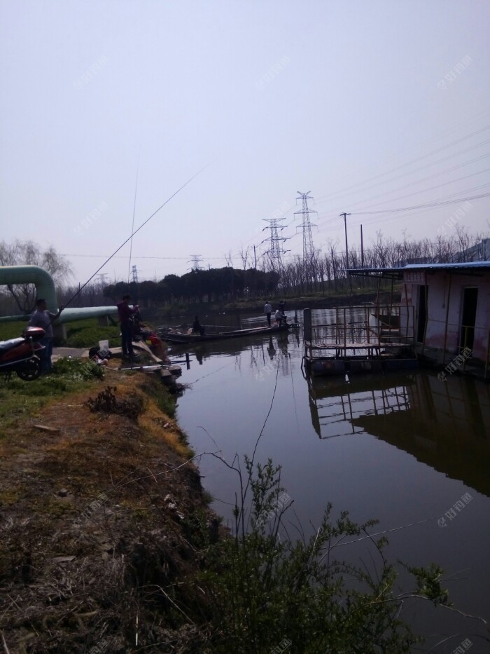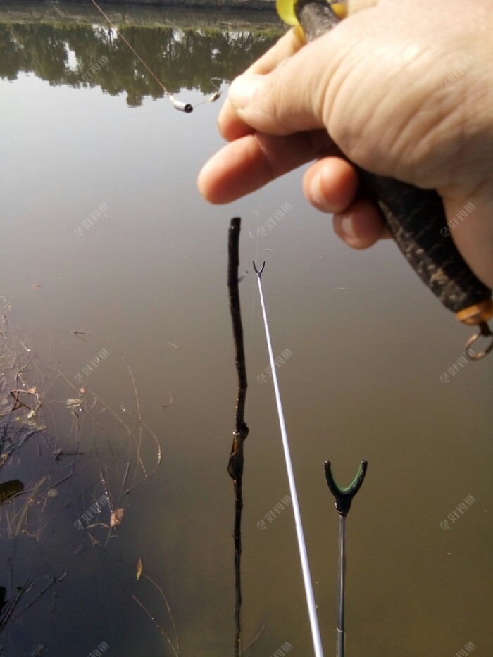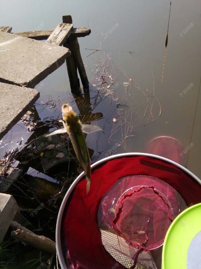 换好子线找好下钩的点,调好漂水深1米左右,开饵,今天自配红虫饵加江湖猎人署留香饵饵,今天温度高饵料味用淡一点,水比1:0.9,抽了十来竿就上白条了,拿出挡针装上好让连竿上鱼,想法好可现实是后边就没口了???这时有个钓友过来问我有没有囗,我说没口他说早上网工刚来搞了的,还在西边搞,我一看西边真有网工在搞着,哎!没次来都这样不是刚电工电就是网工网,没法好好钓鱼了,收了换地方吧!!!我到更西边去???