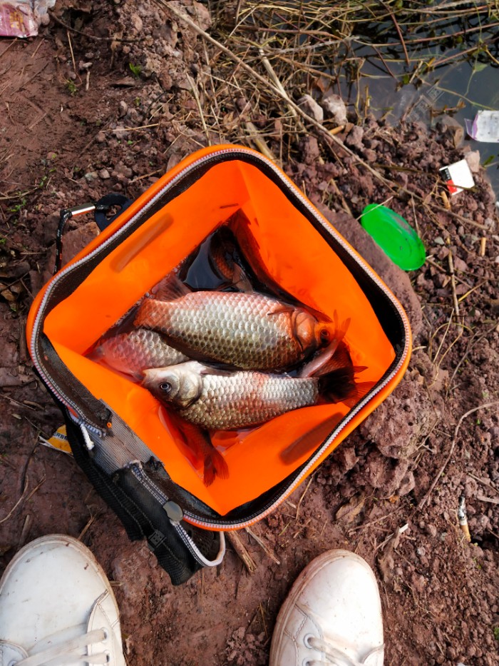 3月21日天气阴,2级风,早上7点钟出发,到达钓点8点过开始打窝,饵料配方比例如下,新四季0.5,4号鲫1,6号鲫0.5,超诱1,2号鲫2,9点钟开始上鱼,一直连口到11点过,不动口了,采用化氏湛卢浮漂加粗尾,调4钓2,我开始拉大饵团,入水后10秒钟不动口,用压风线手法逗鱼,10秒一逗,基本2到3次就能有口。