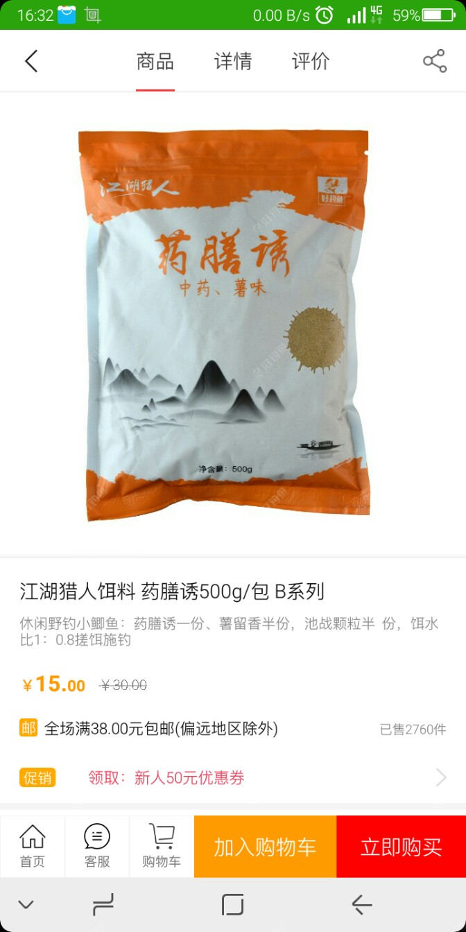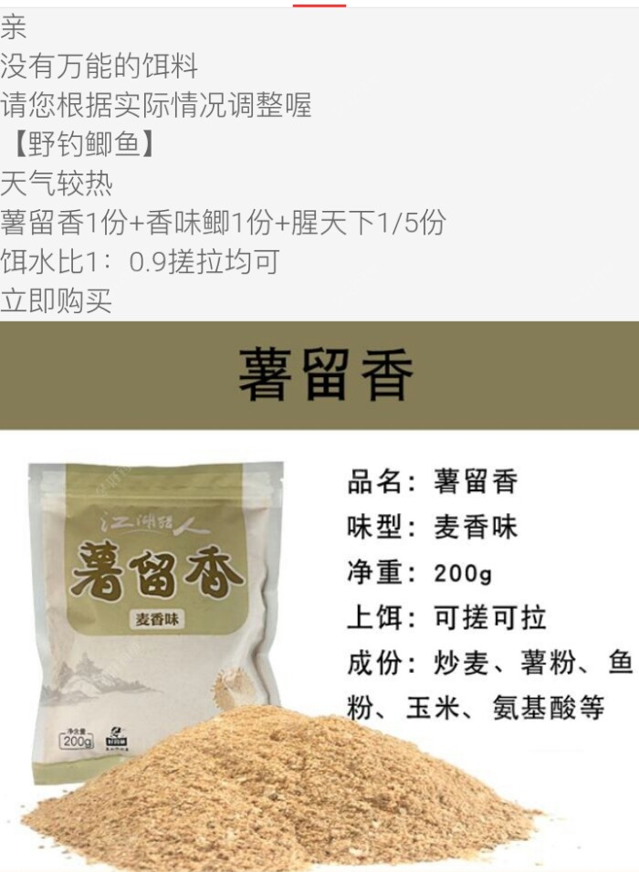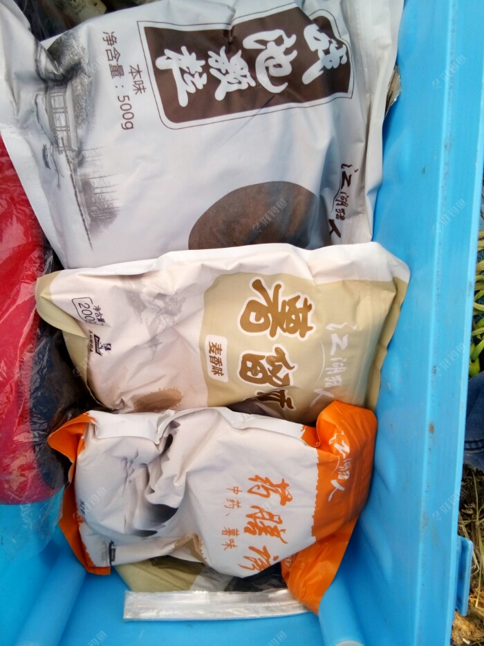 话说上帖写到钓鱼回来吃过晚饭,就出去补手机卡去了,去移动营业厅一问,这卡真的会坏,补好卡上到手机上就来了好几条信息,有一条信息是快递到了,还等什么直接去取快递,你们不用猜了,是饵料到???是平台江湖猎人战池颗粒,署留香、和药膳诱,战池颗粒和药膳诱我没用过,在平台商城看到药膳诱下面有套餐,是这三种饵料就要了这个套餐,
