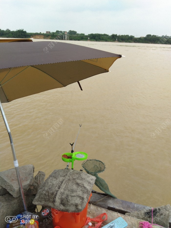 东江居然涨水了,路上泥淋不堪。找了个浅滩回水处钓,估计涨水鱼会上滩。虽然水葫芦多,可看看还能下杆将就着钓吧。