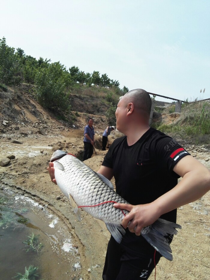 也过了十几分钟的光景,抛完鲫竿再找我的传统竿就发现漂不见了,三步并做两步抓起钓竿用力扬竿如刮地球,心中一阵窃喜,由于此次独行侠,抄网也没支,就喊了画面中在水库边杨树林中吃烧烤的大哥帮忙,他说是他见过用手竿钓的最大的鱼留个念吧?大热天拔尾鱼累的不要不要的,小鱼获自由扛大个的回家喽?