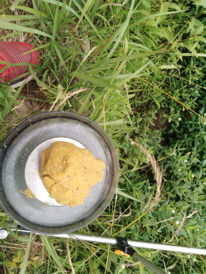 没碰鱼竿已经半月有余了,饥渴难耐,难得今天休息,吃完午饭出去挥几竿过过瘾。 虽说今天没什么太阳,但是异常的闷热,尤其是午后更是让人有些受不了。 在家开饵,大热天儿的能少带些东西尽量少带,饵料醒的差不多收拢成团带上装备直奔今天目标鱼塘。