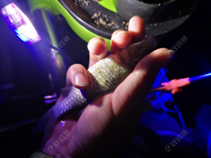 我正专心钓鱼着,忽然鱼桶啪的一声,我最早放在鱼桶里面的开竿小鲫鱼跳河自杀了,这条鱼为啥就这么想不开呢! 也许鱼为了补偿我,给我上了一条板鲫,个头全是今晚最大的!