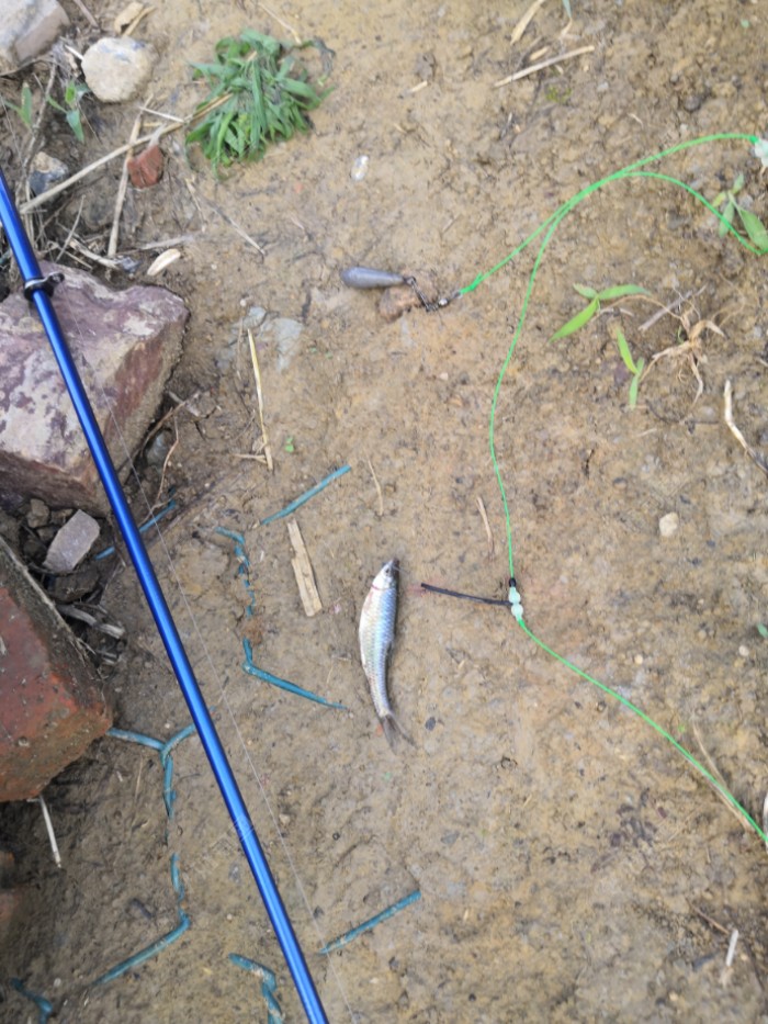 丁哥和卢老弟又开始了他们的走钓,但是今天走钓法也失灵了,依旧没有收获,我挂蚯蚓后一个小黑漂,又中了一条小昂公鱼!
