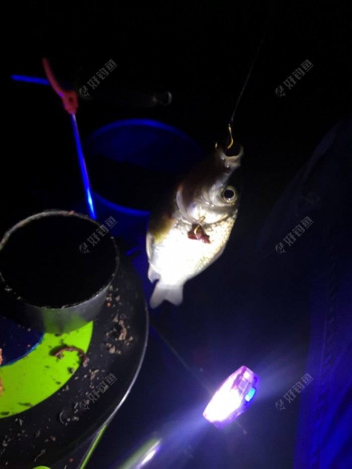 今天感觉好奇怪,天气微风习习,很舒服的钓鱼天气,但是鱼口总体来说不好,不光我一个人不好,所有河边钓鱼的兄弟都是鱼口不佳,我上了两条小鱼之后就是很长一段时间的空窗期,我就一直蚯蚓饵料来回换着,但是还是没口,期间丁大师上了一条黄辣丁! 终于又在十几分钟后一个大下漂,这次我用的是饵料,提竿中鱼,因为天黑我想着肯定是鲫鱼,打开灯一看是一条小昂公鱼,这真是奇怪了,饵料上黄辣丁!
