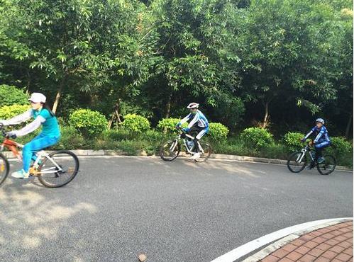 顺便拍了下骑行的驴友,还是个大美女哦。里面环境确实不错,好多人踩单车,绿道修的也不错。