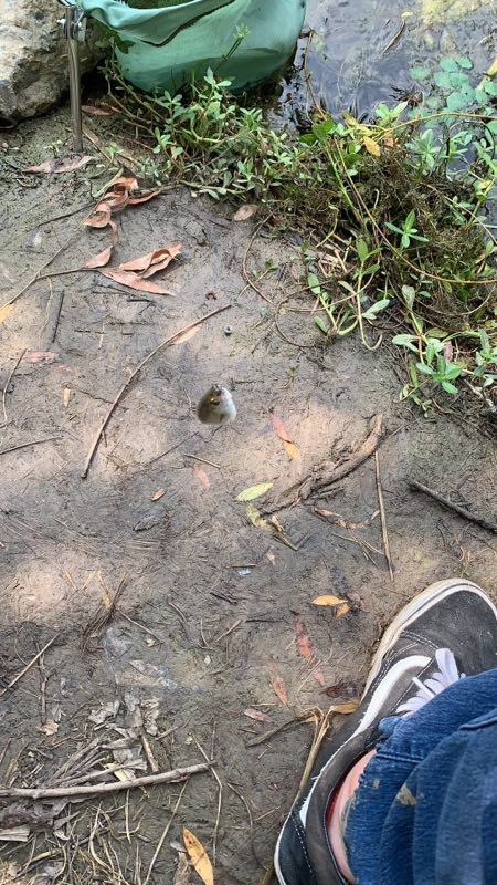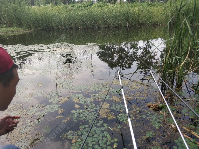 由于今天天气高温闷热,微风偶尔一阵,所以到达钓点的时候已经全身湿透,因为人迹罕至,所以把上衣全部脱掉,汗流浃背?,直到休息了四近四五十分钟才将汗慢慢的吹干。 四处寻走观察钓点,此环境确实非常棒,钓点深约两米左右,不时地看到有大鱼炸水的现象,判定此处为绝佳好钓点。