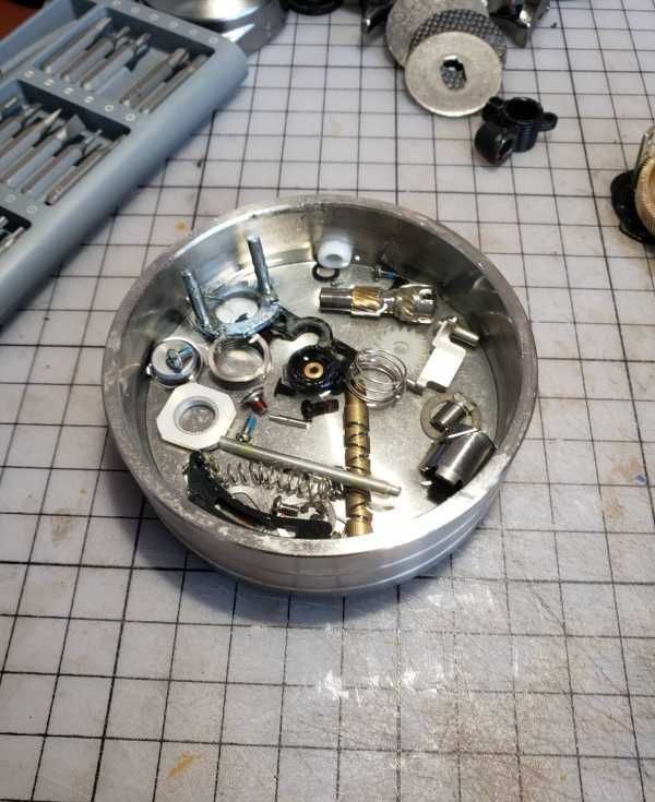 拆卸完毕,准备清洗,小部件用180号手表清洗液手工清洗,主体大配件上超声波!