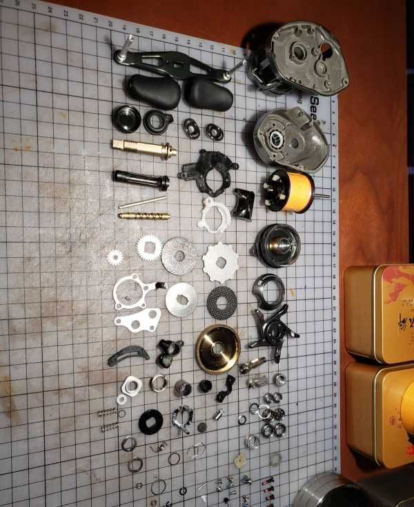 一钓友轮子,买来没用几次,前几天路翘鱼时夜里游泳上岛,轮子在水里泡了蛮久,再使用时发现有异响,顺滑度不如以前,初步估计是轴承异响,润滑油乳化,拿来准备彻底清洗大保养! 准备工具,开拆!