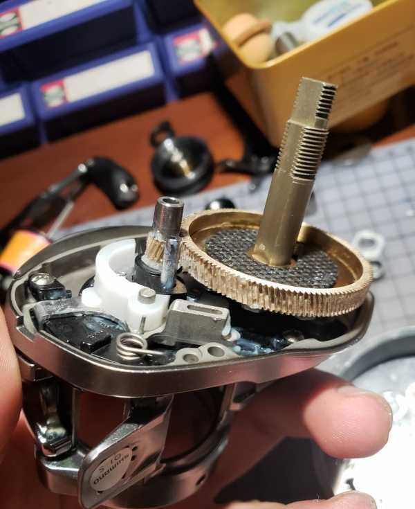组装完毕!上手试轮,离和器压板下压反弹很顺畅,手柄和线杯惯性空转时间比新轮子有所减少,但感觉运转比新轮子更稳定,毕竟加注的油脂比原厂的浓稠些(虽然是s家的油脂),线杯两边轴承为了经久耐用也加的油脂!