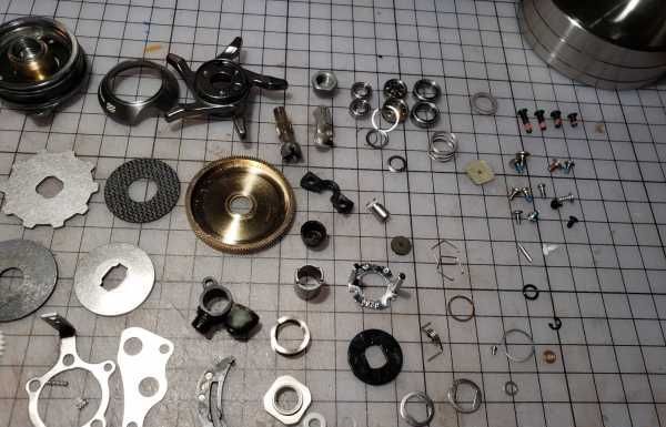 拆卸完毕,准备清洗,小部件用180号手表清洗液手工清洗,主体大配件上超声波!