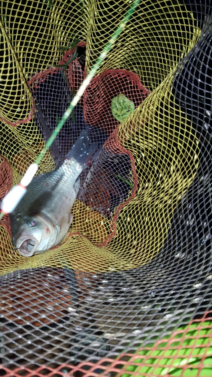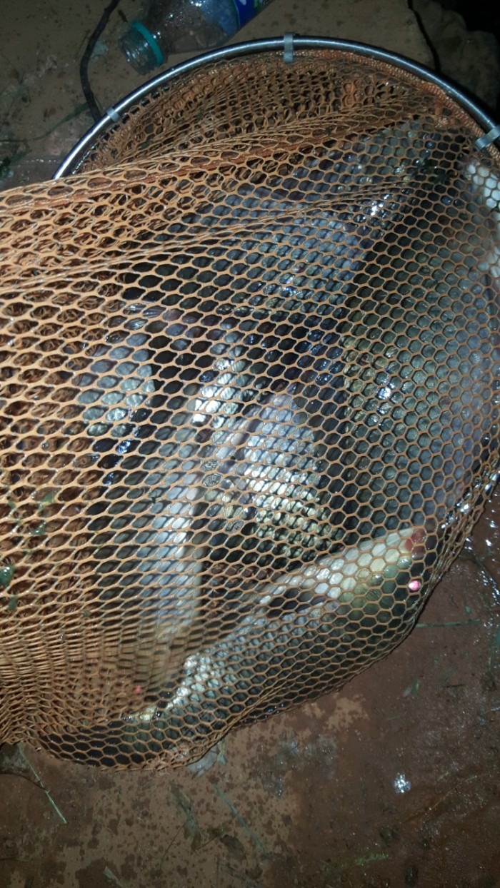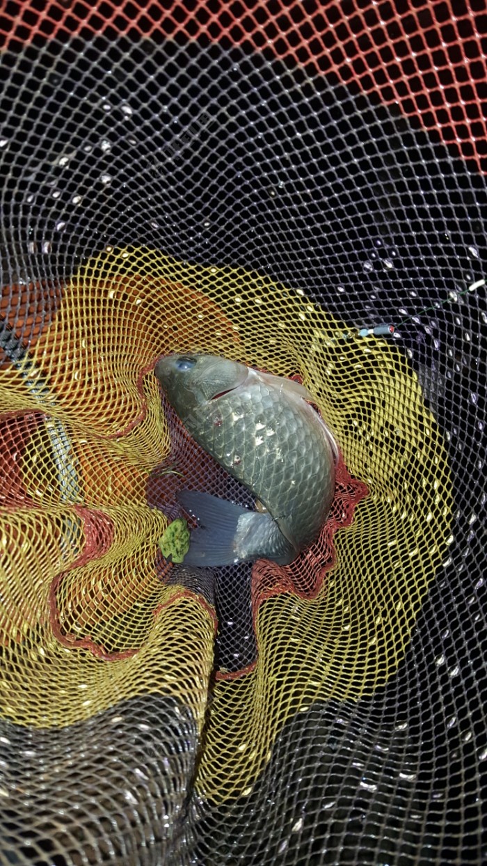 中间脱了2次钩,一次是在点蚊香,突然瞟直接顶了6目,赶紧提杆,钩到了,可惜一下就脱了,有点分量,估计是大板,一次是点香烟抽,眼睛一看,瞟没了,哈哈?又脱了。 第三条是拿手上,准备拿手机拍照,鱼一动,手一滑,掉水里去了,哈哈?