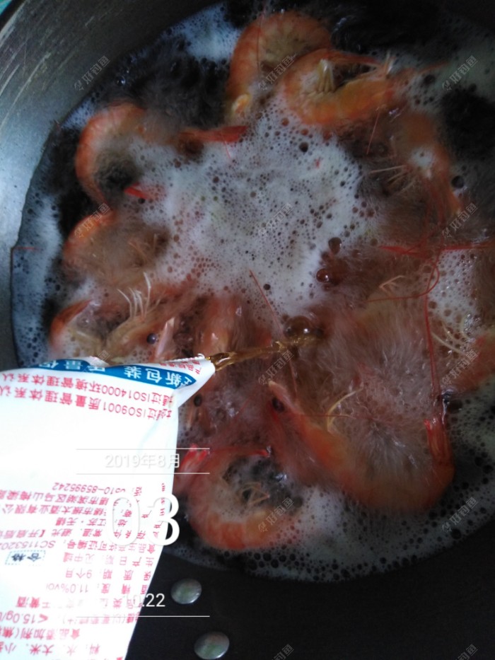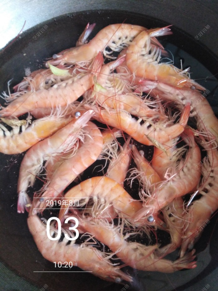 然后用冷水将虾一起煮开(水里加适量姜片),这样煮更能去腥