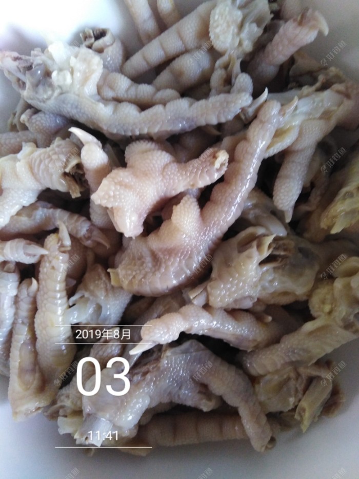 由于领导喜欢吃嫩一些的,所以我就煮了二十五分钟,然后起锅,用凉水冲一下,让鸡爪表面皮质紧缩有弹性。