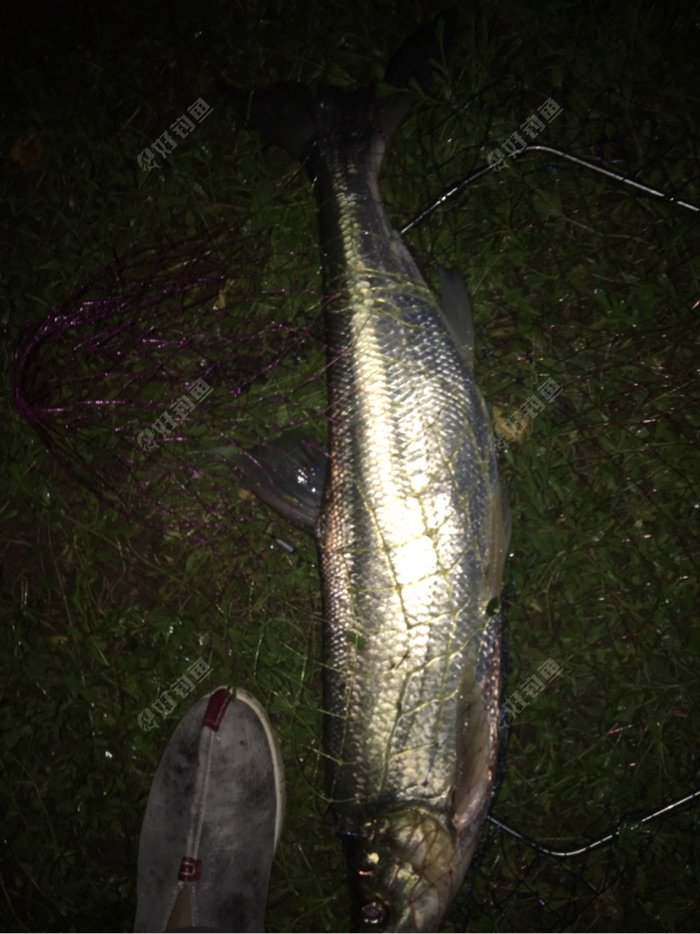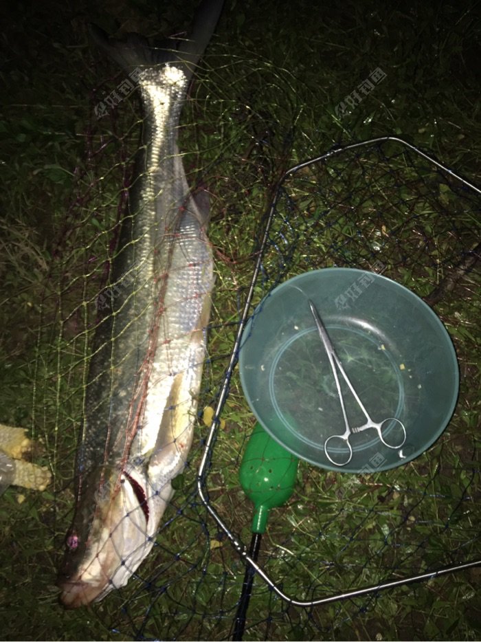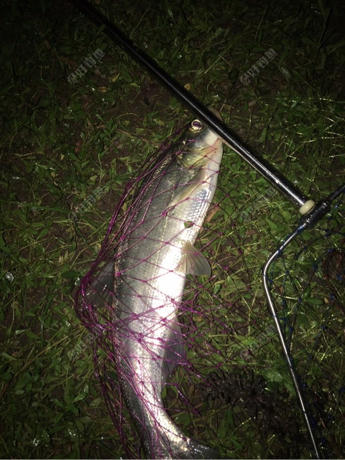 果然一直没口,直到11:20来了一口,抬杆有点分量,随后发力开始左突右串,我夜钓没有打灯的习惯,怕惊了窝子,还好不管有没有口都会把抄网准备好,借着月光把鱼抄上岸,一尾50公分的翘嘴。