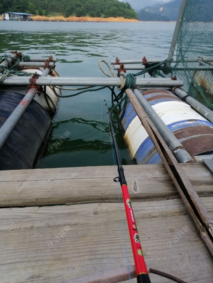 吸取上次筏竿打窝的教训,这次从一开始就把失手绳挂上。我放线数了一下,水深31米。缓降、点搜、提逗找鱼层。不知道是天气问题还是鱼烟稀少,从上午到下午几乎没有看到有口。前一天就上排的一个长沙钓友,已经耐心耗尽,躺到鱼排的房间里休息去了,留下空空的钓椅和筏竿在水面打着秋千。