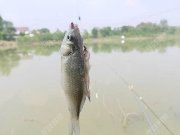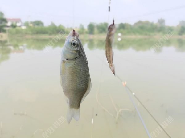 嚯!鲫鱼和一条小鱼同时中钩。