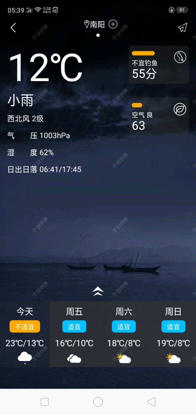 今天温差不大,气压比昨天高,昨天气压998,今天1004,平台预报适宜钓鱼,就是风大,东北风一至五级。细看预报早上八点前风力二级,决定起早点赶在大风之前去解解毒。 早上不到六点就出发,一路急驰赶往钓点...