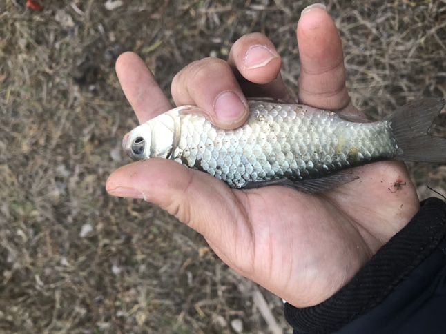 钩上红虫,老操作放下杆。回头去车里拿了包烟,批件衣服的功夫回来,居然漂子都不见了。轻轻一拉,一两半的手感,2号小鲫上钩。 前后大概20分钟不到,让我对新钓点有了点信心。再次下竿,这次等得比较久,15分钟左右,感觉线体轻颤,慢慢拉上来原来是一条小棒花。