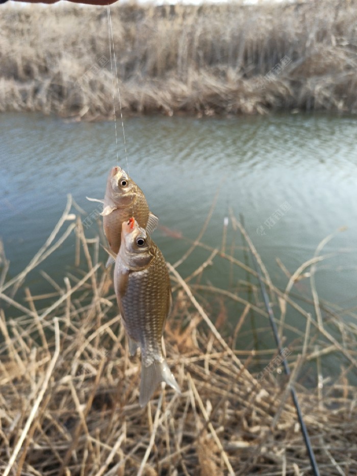 各处路都封了, 近处鱼太小了,冰也不敢上去,昨天发现个好地方 ,大湾 背风 有水流 有草 , 钓一下午口不多,但是没杂鱼来就是上两的 , 就是岸边芦苇太厚了 ,开辟地方太费劲 ,带着的酒米还丢了,朋友说还有点 ,5点多去打俩窝子 ,今天去了到地方发现少带个漂 ,风还大有芦苇好点 不算太冷 ,下杆没动静 ,提起来重扔 ,有点沉啊双飞 有浪头 口微 ,不看漂了 下杆 抽两口烟提竿就中 ,爽歪歪,中午来了三人 ,阵地失守,也没窝料了 ,也不让开工 ,路堵着哪也去不了 ,好不容易找个能打发时间的地方 还暴露了 ,沟也不长 做不了几个人 , 明天再玩一天吧 ,回头又要钓瓜子大的鲫鱼了。