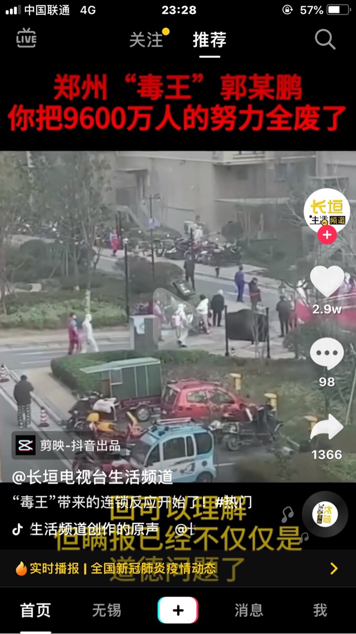 国内随着疫情的防控,从紧张的形式到逐渐平稳。我大河南已经有好些天没有出现新的确诊病例了。本来以为疫情得到了有效的控制,随着春天的到来,想着过几天就可以钓鱼了,甚至有的钓友们已经开始钓鱼了,没想到你(郑州毒王)一个人的出现,把平稳的趋势又给搞得紧张起来,郑州出现一例超级传播者俗称“毒王”。这家伙彻底“火”了,网上怎么说的都有,“河南郑州出现一个王炸,一个人干翻一座城。一颗老鼠屎,坏了一锅粥。一个王炸可能让9600万河南人的努力付之东流。”这家伙不想火都不行,与此同时在背后等着他的是法律的制裁。