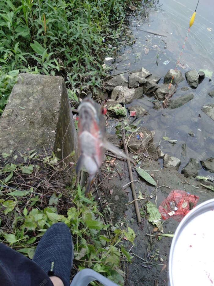 今天下午终于可以偷偷出去甩两竿了,因为门前河边没有什么人,不存在传染不传染的。????这条河道就我一个人在河边钓鱼。一个人承包了一条河!??????