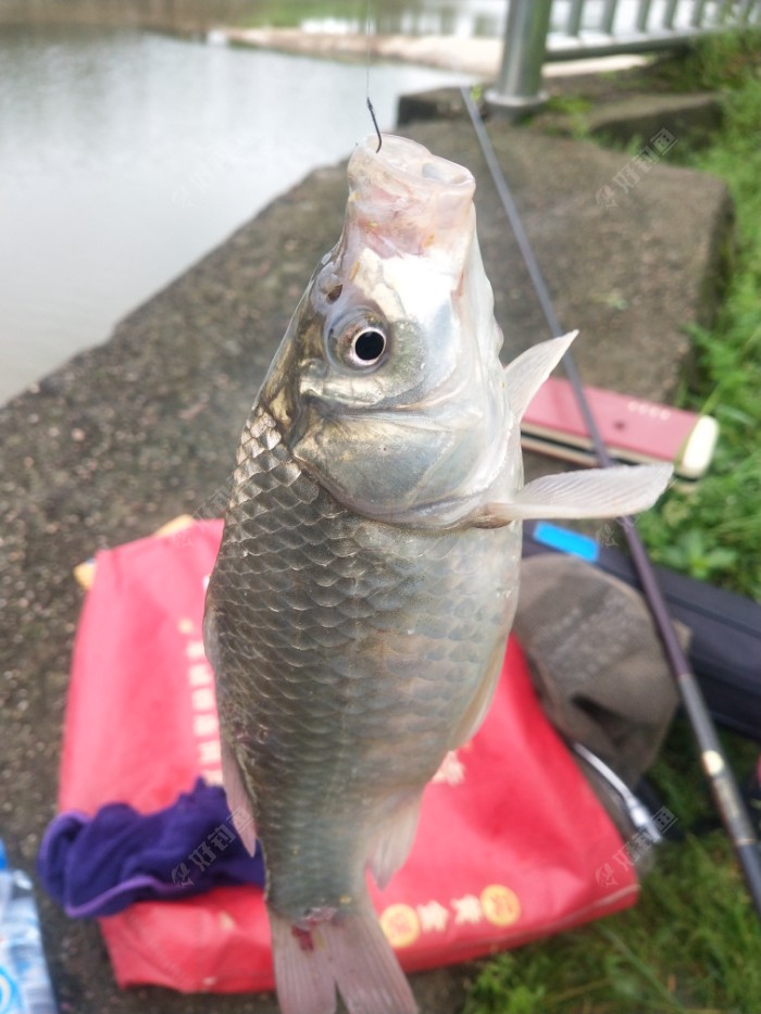 还是老一套动作,酒米打窝,用的星漂加双钩(因为钓上来的鱼还要放流,所以我不喜欢用有倒刺的钩,这样可以减小对鱼的伤害),钓点水深在2米左右,水面三目,水下三目。 先从三目钓起,后面根据鱼情再来做相应的调整,今天的鱼情依旧不给力,也不知道抛了多少竿,浮子轻点,来鱼了,目标鱼,小鲫鱼一尾,这下不用担心空军了。