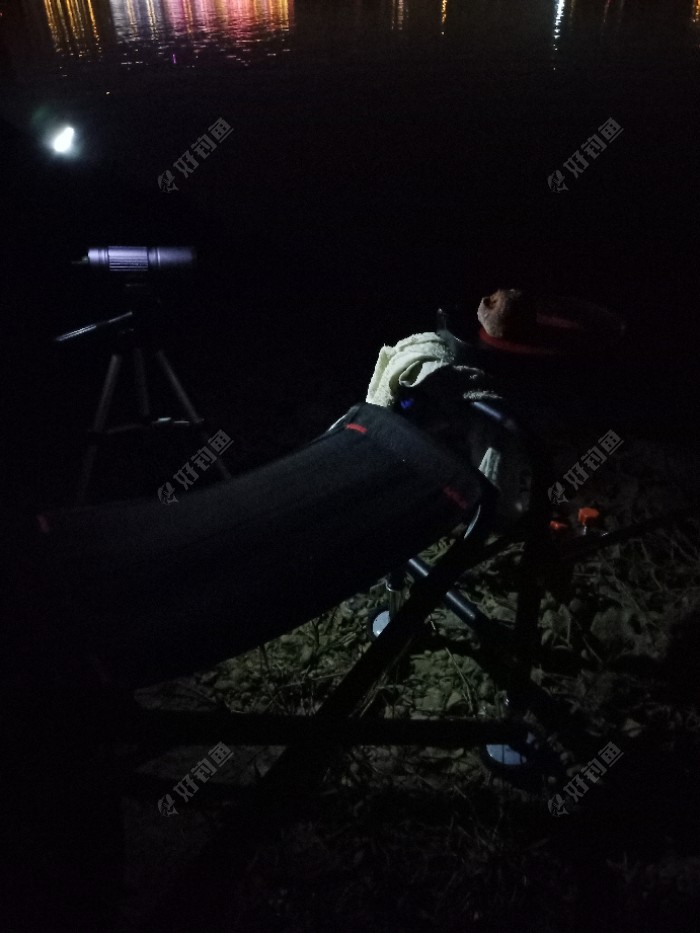 。。清闲夜钓, 六月天,白天热,没法钓鱼。 好在雨水天较多,也就不怎么热了。 连续几天雨,让闷热的天气凉爽了不少。 天空也变的蓝蓝的,几朵云彩也白白的。使人的心情不再烦躁,开阔许多。 雨后的清凉让我有夜钓的欲望。傍晚,收拾收拾战备,经领导批准赶紧赶往战场,一场没有消烟的战争就次拉开了帷幕。 晚霞映照着水面,风景怡人,心情爽朗。 因为我最近刚搬了家,所以就在离家不远的灞桥水库来夜钓了。库边己坐满了钓鱼人,还有游玩和乘凉的人。 此时已无心赏景了,赶紧调漂。。。 四米五台钓,贰加壹组合。野战,九一八等等。饵料重多。 天黑了下来了,却一直没口。有点郁闷。 闲着没事,又抛了一副海竿,挂的甜玉米粒。又支了副六米三,钓跑铝。挂玉米 两三个小时没口,旁边已有好多钓友离开,也有过来询问的,今晚大家都没钓到鱼,没口。也不知是不是雨后刚晴,鱼口不好。 我连续换了好几种饵料都没口。这时叮当声响起,,,赶紧起身去拿海竿,感觉有手感,却突然又轻了许多。跑了,太不给面子了!!! 又一小时过去了,还是没口。就想收了回,叮当再次响起,这次可千万别让跑了,赶紧起竿刺鱼,摇轮,,,几下功夫就感觉手里突然空了,又跑了!!! 检查一下爆炸勾,原来是玉米粒挂的勾尖露出太少,刺鱼不深,造成跑鱼。 虽然没钓到鱼,但是夜景还不错。风儿也凉爽。 清凉一夏,下次大鲫大鲤。。。