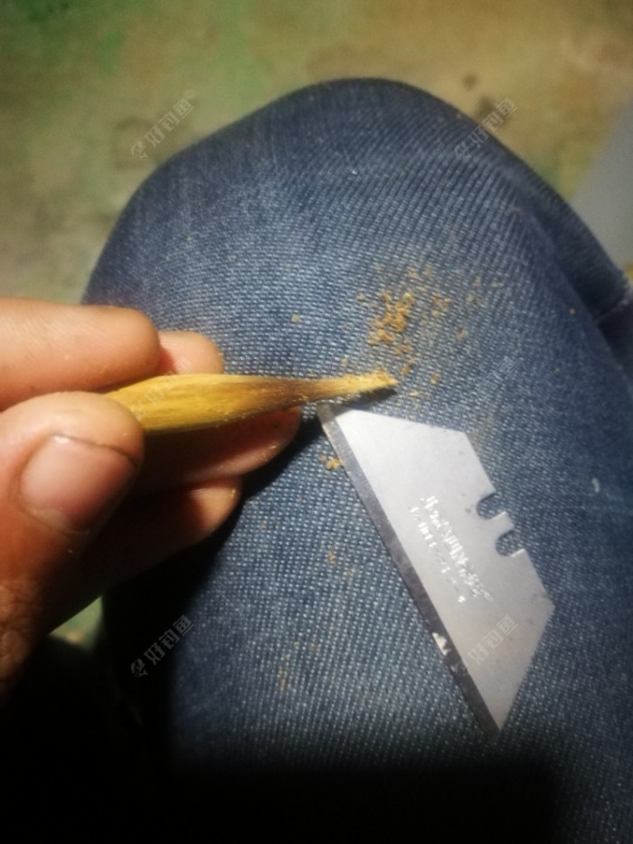 开始用刀片刮皮,这里给大家讲解一下,芦苇漂有去壳芦苇,和带壳芦苇,我这里做的是带壳芦苇。有一些便宜的带壳芦苇商品漂只是轻刮皮便于漆面的附着。