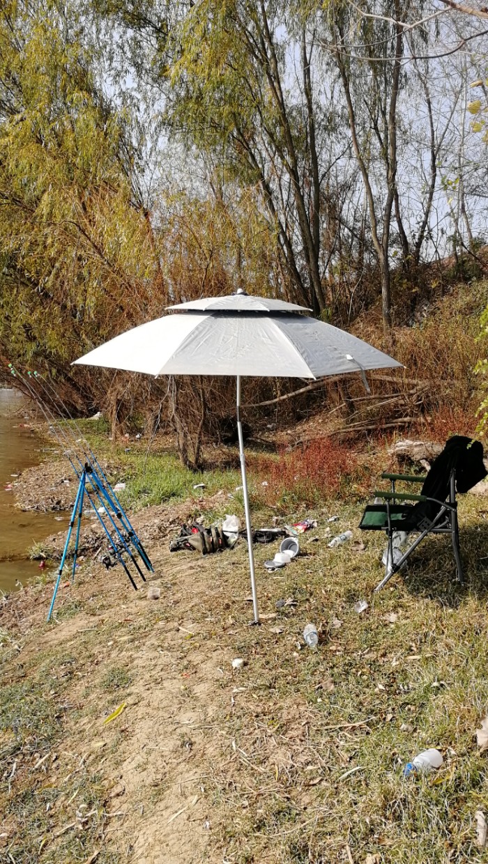 钓点位置很好,背风向阳,又是两条河的交汇处,来的比较晚,已经坐满了钓友,三步一岗五步一哨的,随便找了一处平坦的地方,做好准备工作