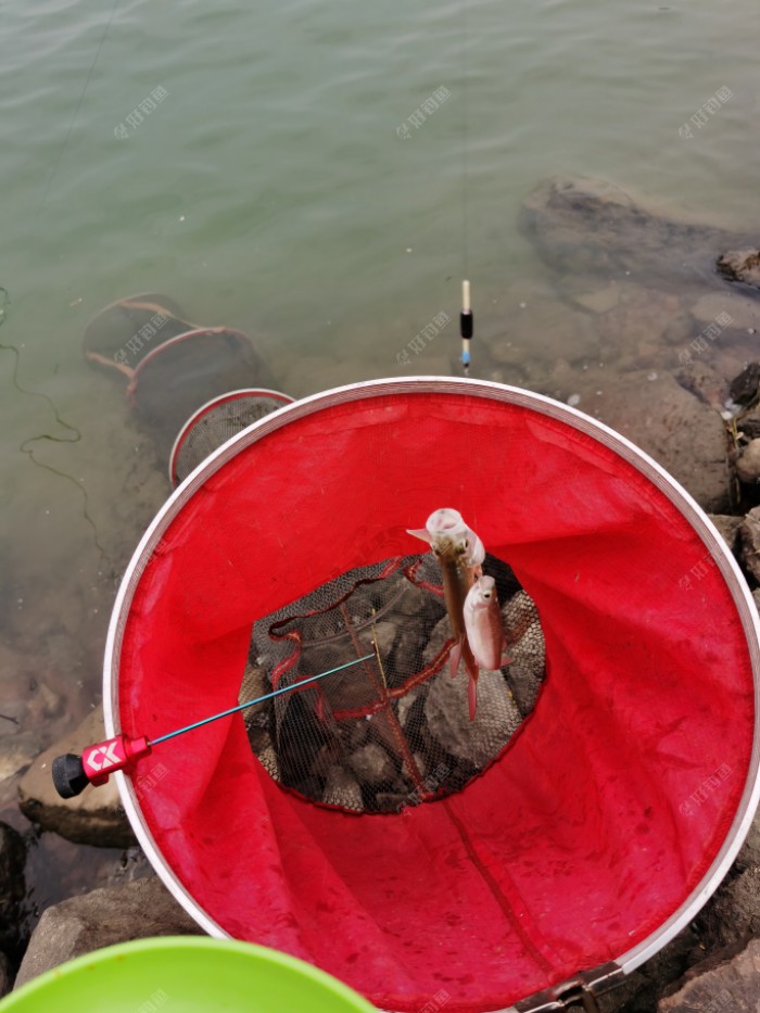 今天下班早,就到附近的湘江河里看了看,有几个老大爷在钓鱼,都用7.2或8.1的竿子搞大的,还有几个在打抛竿和路亚!这些打抛竿和路亚的都属于打游击,渔政来了就跑!实在体会不到他们的乐趣何在!湘江现在退水很严重,我找了一处回湾坐在护堤石头上,首先用3.6米的竿子,呵呵!3.6米的竿子还钓不到底!我又换上4.5米的,呵呵呵!水深4米多一点,刚刚好!旁边老大爷的长竿下去就有口,可是打不到鱼,我问了问他们线组,都是夏天干大物的,5配3或4配3,钩子7号伊势尼,我告诉他们,有口打不到肯定是小鱼,你们大线大钩小鱼吃不进嘴!我打了巴掌大的糠饼,开饵下护支抄网一气呵成,下竿第一竿就是双飞红翘和白条,后面一直都有口,从两点半钓到四点四十收杆,(五点二十要接小孩没发钓了)鱼获两斤多吧! 冬季钓鱼最大的快乐是:在寒风中还能钓到鱼,更大的乐趣是在低温深水钓白条,别有一番韵味!