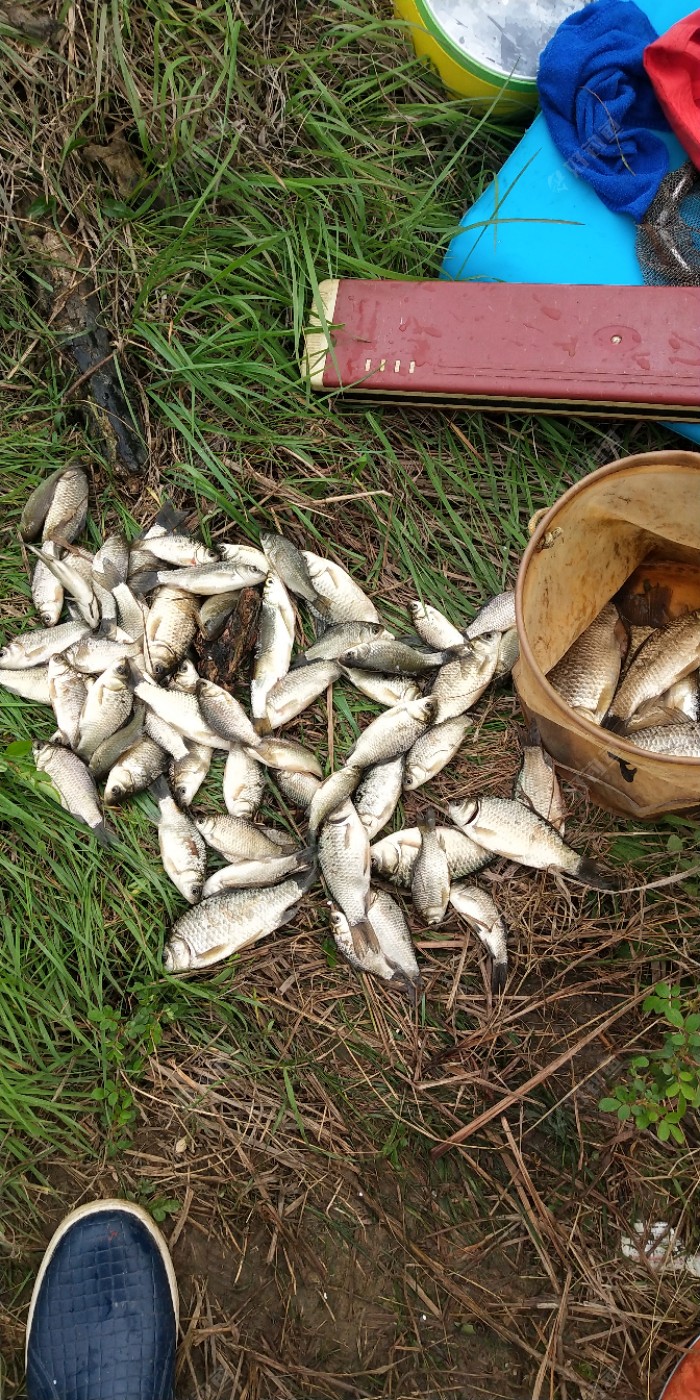时间在七星漂不停的轻轻点动中悄悄流逝,或许是今天的大餐让它们胃口大开,又或许是被我的热情打动,鲫妹妹左一条右一条的上来和我约会了,今天的收获还是不错的,钓到十一点,三个半小时总共钓了83尾,小的居多,留下六尾三两以上的,其余的全部放流,等他们长大了再约。 数了数量之后又放回鱼护,本来想拍个放流的视频,地形不好,没想到脚一滑,差点人都打窝了,视频也没拍好。 感谢各位观贴,祝大家大鲫大鲤。