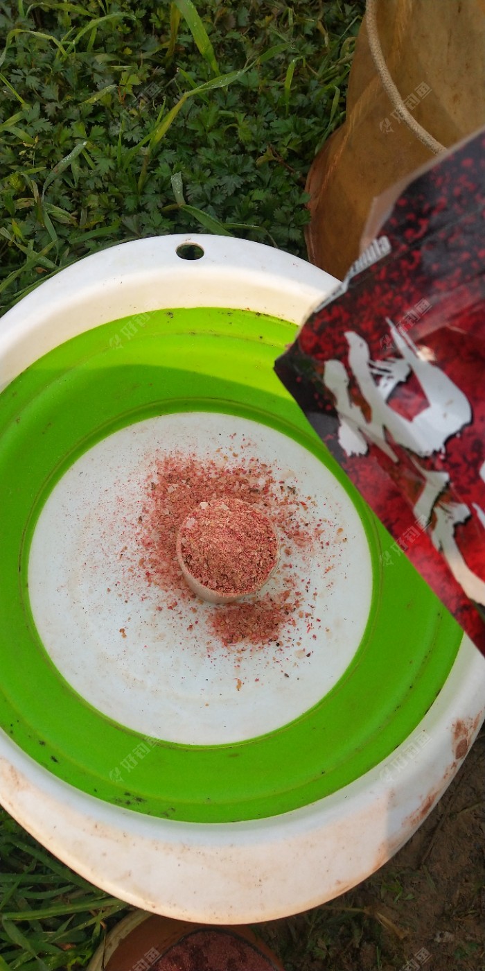 饵料还是用我喜欢的红虫鲫,拉饵作钓,在我们这个地方,这款饵料效果还是不错的。