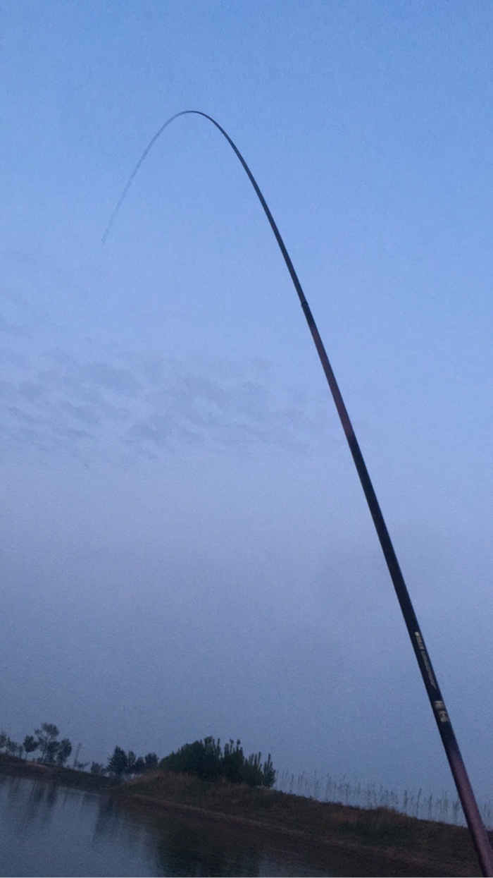 搓饵大约抛到第二十竿,浮漂一个快速下顿,提竿中获一条板鲫。鱼的挣扎力不算猛,4.5的竿是37调的,手感超级棒,弯弓弧度优美,我的双子鲫竿对付大板鲫有丰富的经验。溜鱼提竿的感觉特别爽。
