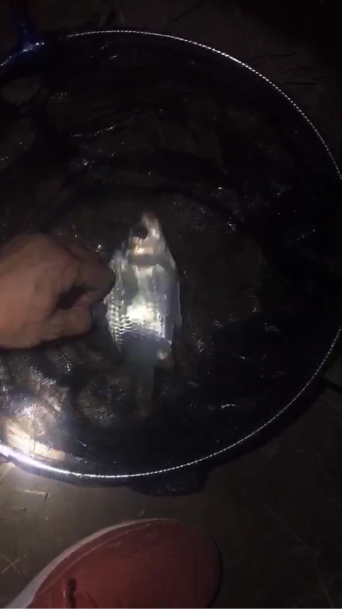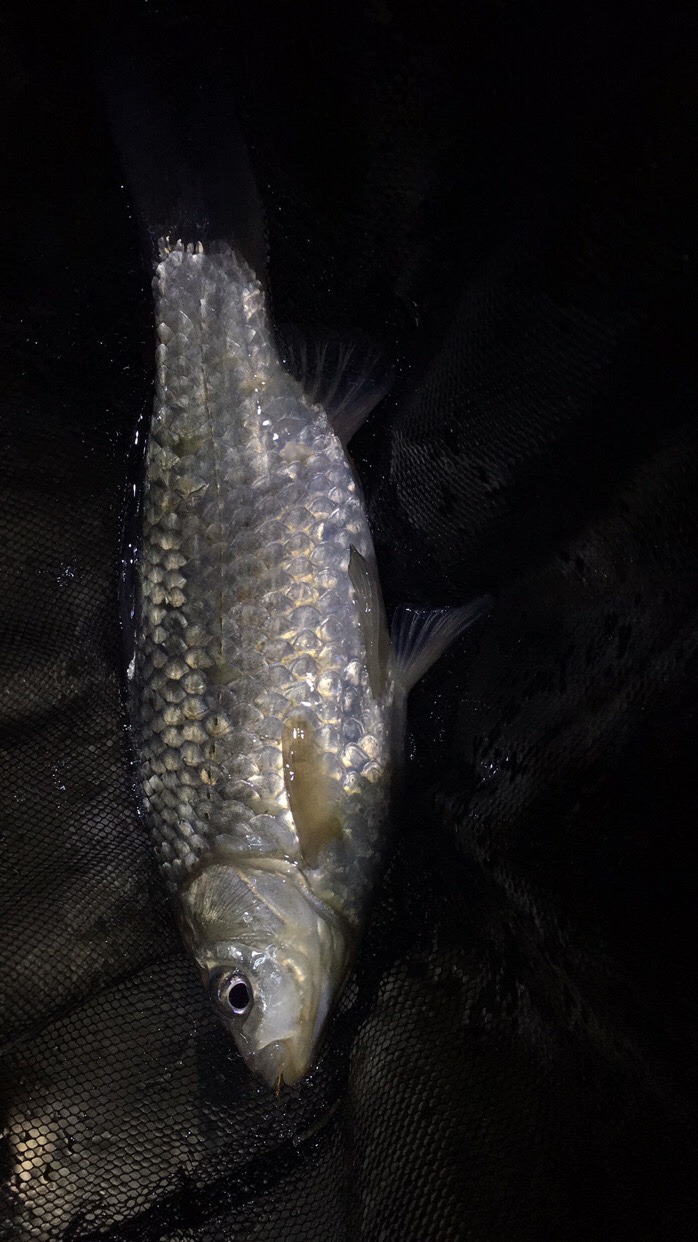 浮漂一个点动,紧跟着就是上顶,提竿中鱼。手感很沉,鱼不出水,赶紧双手握杆,绷紧!不一会儿鱼漏出水面,大板鲫!很大的大板鲫,金黄色的鱼鳞,我靠!运气真好!赶紧拿起抄网抄鱼上岸,好重啊!绝对是大板鲫