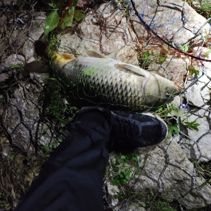 “坐标千岛湖野钓位,守了三个通宵。半夜十二点黑漂,杆子直接弯成大弯弓,溜了整整四十分钟,抄网都装不下!这经历够我吹一年!”
