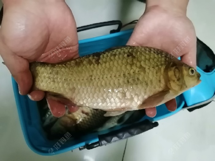 带孩子玩了一下午,回去给老婆孩子准备好晚饭,我们吃完后孩子她妈带着孩子就去小区外边跑步去了,我也不想去,没啥事我就开车直奔山里水库了,今天玩的挺累,一下午也没闲着,玩了两个小时左右就收好了 位置还是找的一个老钓位,不过这回坐的是上游,由于今天感觉有点闷,气压低了一些,所以上游的进水口湾子,是个不错的位置,唯一的缺点就是有些走水 不过这倒不是什么问题,直接跑铅就可以,饵料还是老鬼的,今天开饵的时候又加了一些粘粉,增加一些附钩性,只好杆子,打了一些自制窝料药米,就开始守候鱼儿进窝咬钩,大约一小时,浮漂有反应了,立刻提高,嘿嘿?,鲫鱼一尾,个头可以