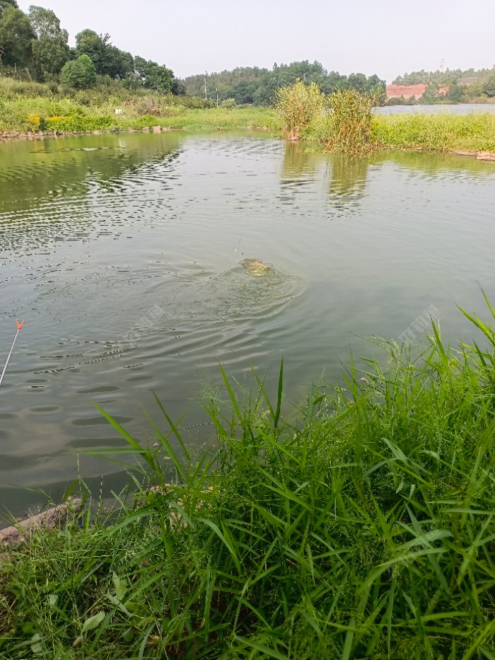 大家好! 很久没有正紧的发个帖子了!今天抽空跟大家唠叨一下今天的作钓详情及过程! 中午吃完饭并没有打算去钓鱼的,躺沙发上眯了一会,醒眼玩下手机已经两点多了,正准备打开电视追下剧的,被一朋友电话相约去甩两杆!犹豫了一下还是拿上东西出发了! 今天的钓点是这个朋友姐夫家里的一个小鱼塘,不一会就到了,刚到地方摊子还没摆出来朋友就被叫去上班了,留下我一个人对着水面思考人生了! 今天的目标很明确,就是清理一下钓箱里一些多余的饵料,翻着翻着翻到了两个月前剩下的半包鲢鳙饵! 好吧那就先抽完这点饵料再说吧,开好饵调好漂抽吧! 抽了大约二十来杆就来信号了,漂左右晃动.这是明显的鲢鳙进窝了!心里想着各种顿口和黑漂!事与愿违就是不见正经的漂相! 抽了几杆还是没见漂相,思考之余把漂往下撸了三十多公分也就是一支漂的深度,《之前钓的一米五左右》抛了几杆来了个大顿口果断扬杆,中!