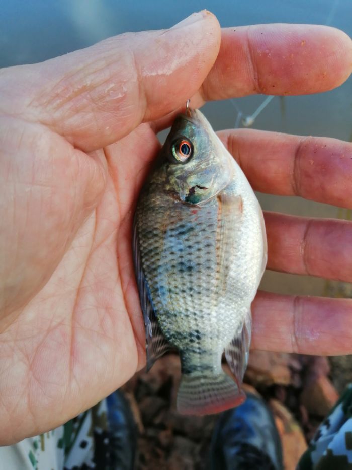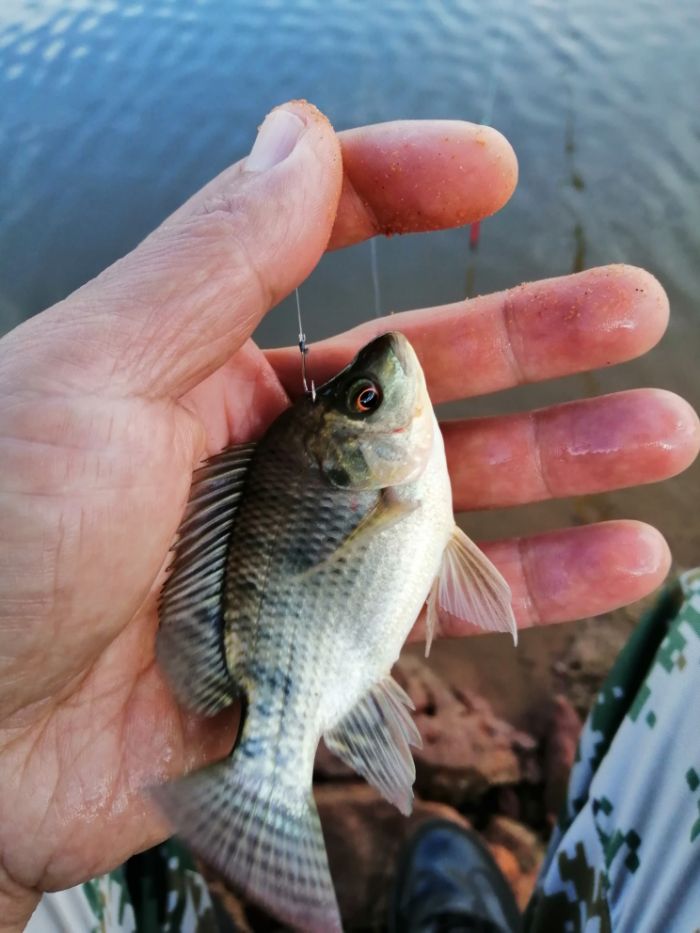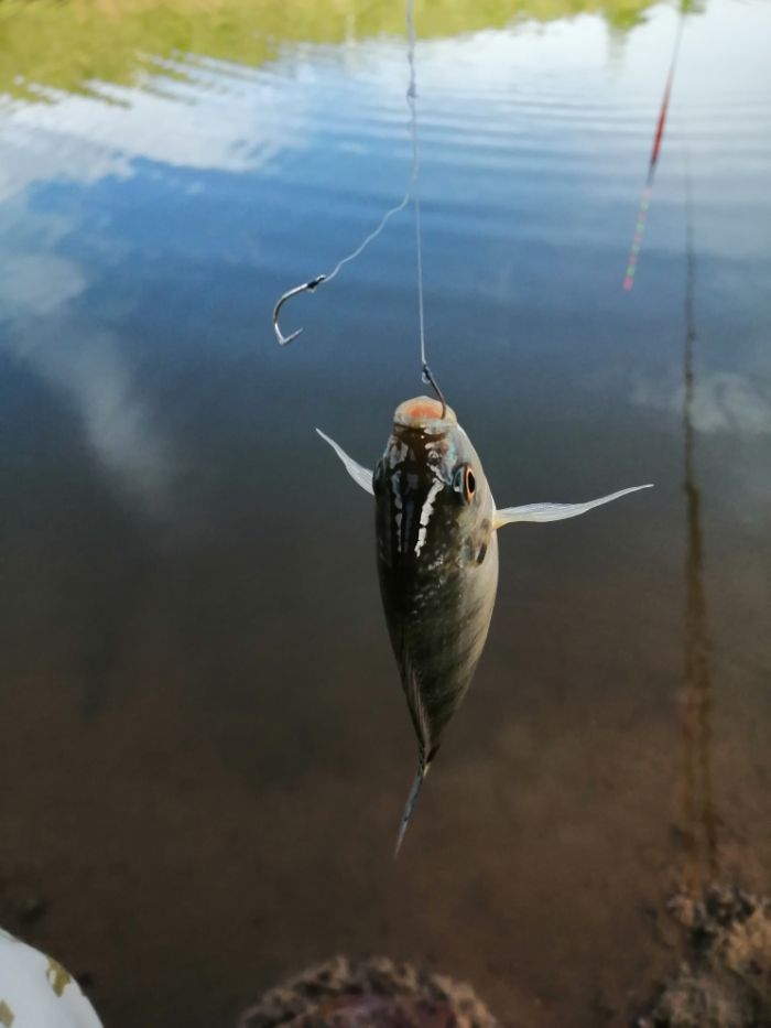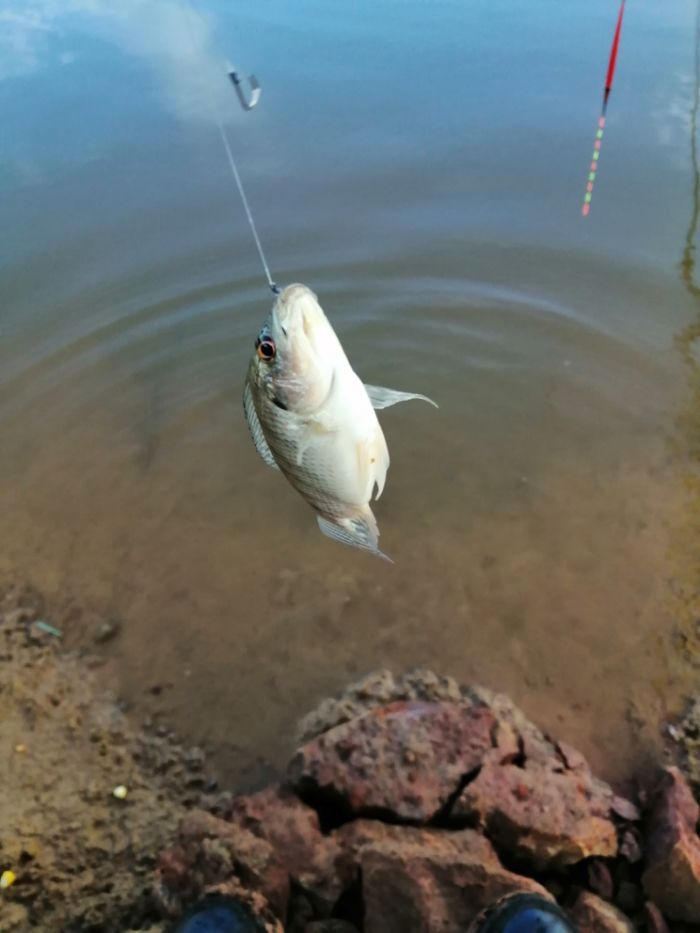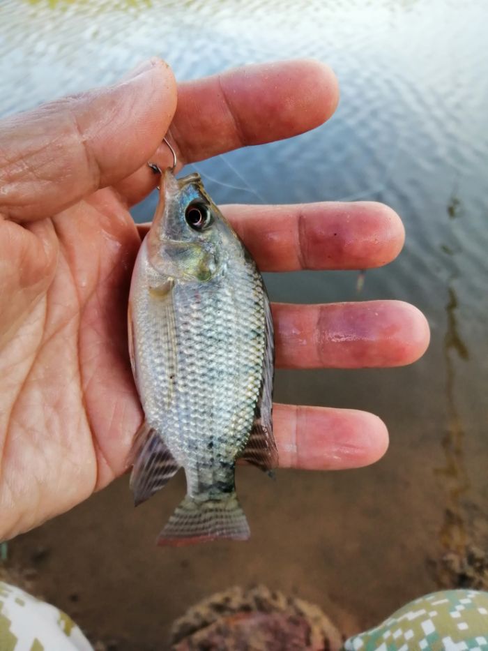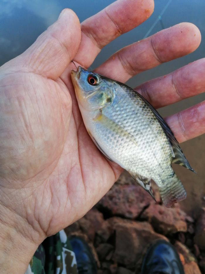 钓到上午八点多,唯一碰到一条大的,结果还切线了,只怪我把0.4号大力马换成1.5号斑点线,加之小罗非口杂乱,饵大,需放口,5号伊势尼钩柄较短,所以切线了。 切线后,又是小罗非咬钩,又钓了一会,随着太阳升起,小罗非更疯狂,开始起浮,半水就有截口,钩饵无法到底,只能选择收竿了。