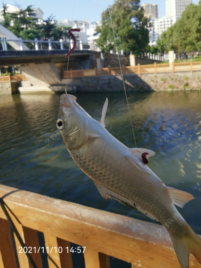 写在前面————(9月10日累计有124次钓事,由于好久不写,以后就不计场次了)。 从九月十日起,整整两个月没发帖子了,由于小区河道老菜地资源问题,没有手竿钓鱼,所以,写帖子之事也就搁浅了。 虽然手竿没有出勤,但是在这两个月里也没闲着,有80%的天数,每天都有钓鱼,那就是路亚串钩试钓,从试钓到迷上它,而一发不可收拾,基本上每天上下午各来一次,原因是,翘嘴都在上午6-9点、下午在傍晚这两个时间段开口的较多,故而每次都要玩一个小时多一些,鱼获嘛少则两三个,多则十几二十个,大小不一,小的半两、大的二三两,鱼获差的时候五六个不等,随钓随扔,如果开局较好时则给了钓友。 路亚串钩在小区河道里玩,效果不好,如果能到大水面(比如,太湖)那效果肯定不一样,但在小区河道里练竿倒是一件不错的事情。 如果将这些路亚场次记录下来的话,估计总场次或将达到二百场以上了,算了,不计算它了。 言归正传,还是来谈谈十一月十日恢复手竿钓鱼的情况吧。 一、下午场: 中午11:30分来到以前的老钓位,两个月以来虽然我没有钓,但是,其他人在这个位置还是经常钓的,每次都仔细观察过,除了小杂鱼就没有见到过真正像样的目标鱼,因此,11月7日就立过冬了,再加上7号下午大降温,所以,我就在老位置打了个窝子,等过一会试试看。 12点来到钓位,架杆上线等等,不一会就开钓了。