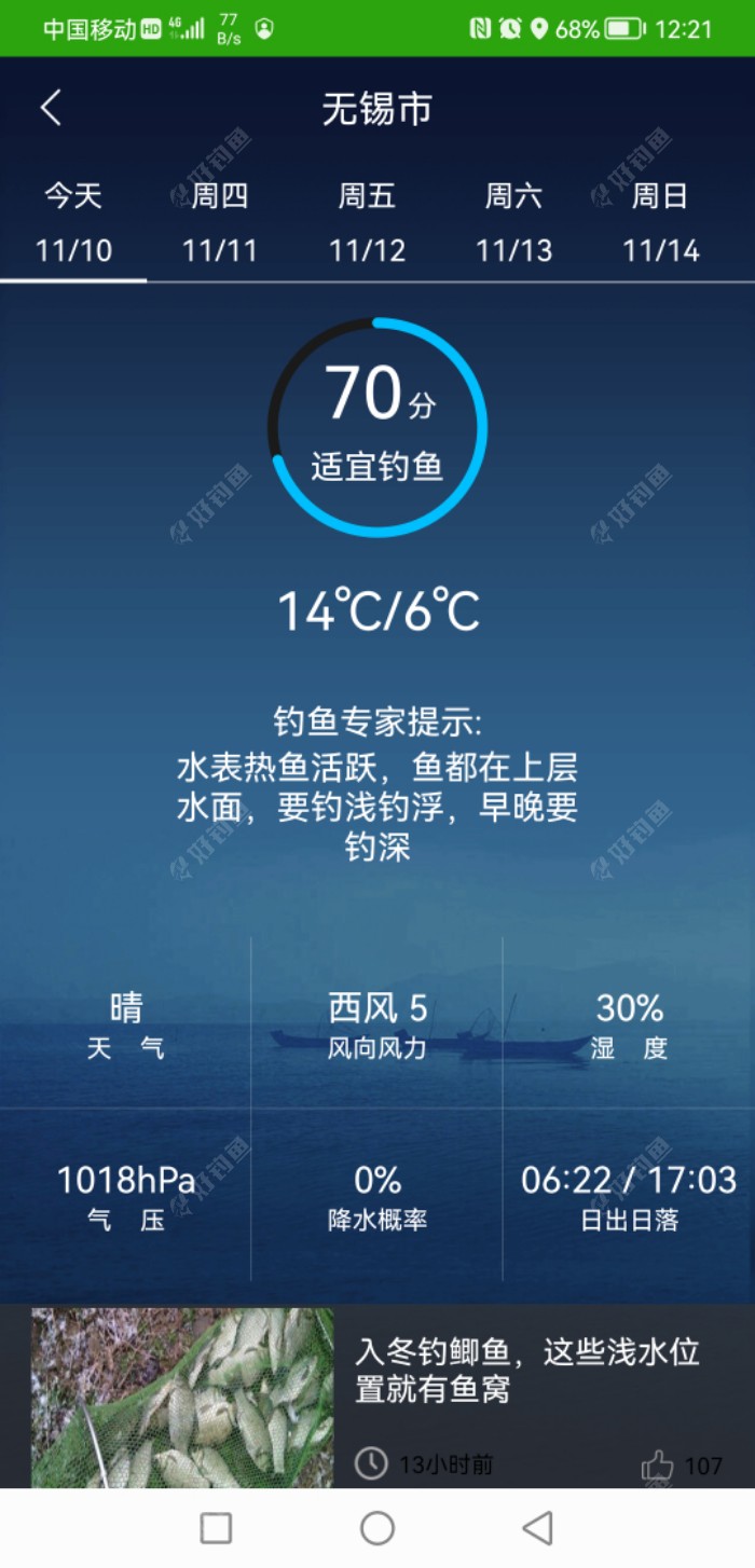 三:小结: 这两三天处于大降温后的回升天,白天小鱼还是很活跃的,很闹人,关键是,我们小区边上的伯渎港河道每天走水,严重影响钓鱼的,所以,白天我是不想去凑热闹,我还是喜欢夜钓,干扰少了许多,鱼获不在多少,能安心过过钓瘾就行。 冬季钓鱼什么时间段最好 冬季可以钓鱼,不过跟温暖的季节相比,此时要想钓到鱼相对来说要困难一些,因为鱼类此时开口并不是特别容易,会受到水温的影响。此时要选择好钓鱼的时间,并且最好提前打窝,将一部分鱼吸引过来,这样更容易钓到鱼。一般来说,冬季钓鱼的时间段从早上8点开始,到下午的3点左右。在这个时间段内都是可以钓鱼的,早上8点太阳开始升起,气温会慢慢回升,可以开始钓鱼,而一直到下午,气温相对来说都比较适宜。 而具体来看在什么时间钓鱼,则需要根据具体的情况来决定,因为在不同情况下具体的钓鱼时间也是不同的。比如,不同鱼类的开口时间也是不同的,有些鱼类的开口时间比较早,在早上就会开口,而有些鱼类的开口时间比较晚,一直到中午才可能开口。因此,在钓鱼之前要先将这些情况了解清楚,然后提前打好窝,之后再钓鱼。 好长时间没有写帖子了,都感觉不会写了,勉强胡诌八扯几句,错误难免,敬请批评指正。