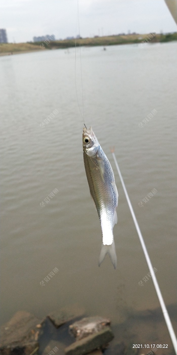 开饵,调漂,找底,打窝,所有的准备工作做好,摊子也摆好,就准备招揽顾客了。 这个地方现在退水了,水深大概在两米左右,入冬以后鱼口轻了很多,不像夏天秋天那么明显的顿口了,所以不像夏天那样调五目,四目,改成调三目,先从三目开钓,后面再根据鱼情慢慢调整吧,反正钓鱼也就是找鱼层。虽然前期用酒米打了窝,但是还是先搓大饵再做一下窝子,浮漂一到位就提竿,让饵料在水中形成一个雾化带,看顾客是不是来的更快点。 还没抛几竿,浮漂一个上顶,第一个顾客登门了,小餐条一尾,店大不欺客,再小也是客人啊,先接待吧。