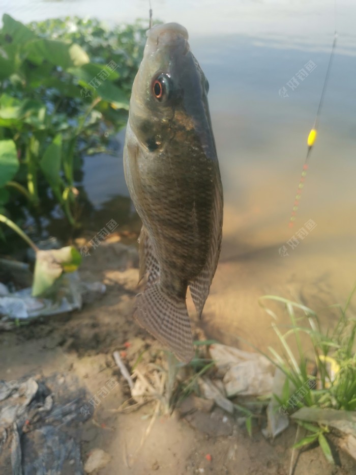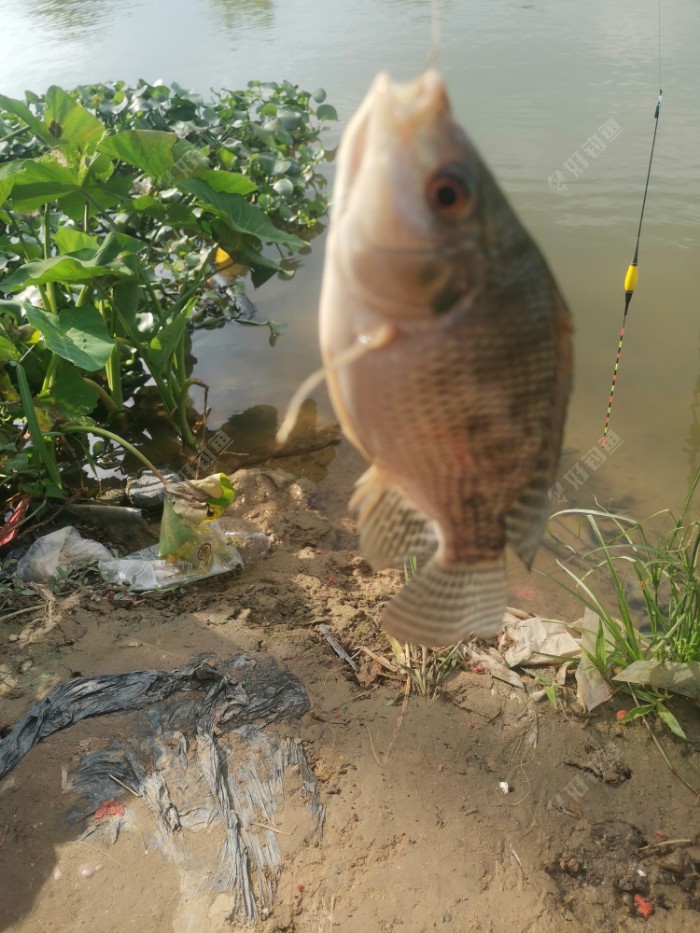 正当绝望的时候,又是一个黑漂,(其实之前也有一个黑漂,把鱼鳞锚上来了),这个泰鲮就没怎么挣扎了,乖乖上岸,也是一斤左右,嗯,今天不至于空军打脸了。