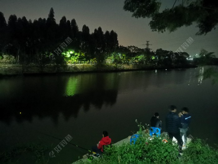 吃了饭,晚上出来踩点,九点多了,凉风嗖嗖的,还有钓友在坚守一线。这个位置就是我明天的其中一个钓位了。