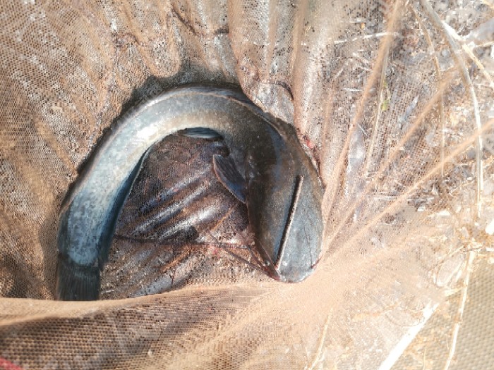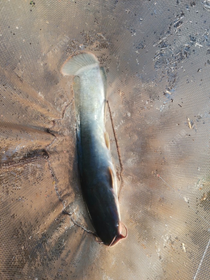 一个下顿,提杆中鱼,还挺沉,又不挣扎,还以为是臭不要脸的清道夫,结果拉上来是个鲶鱼。没错,就是你这条鲶鱼的那个鲶鱼,没错,我就是在说你。大了不敢说,2.5斤+有