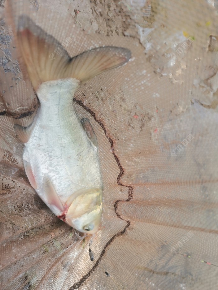 刚拍完照放下手机,突然浮漂一个猛顿,提杆中鱼,也是直接拉上浅滩了,白花花的还以为又是小泰鲮,结果又是车祸现场,一条小白鲢。
